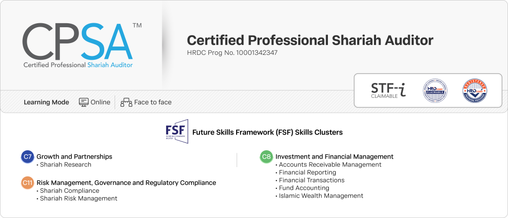 CPSA is designed to equip learners with the requisite technical understanding and professional skills on Shariah compliance audit and Shariah review processes for the Islamic banking and finance industry.